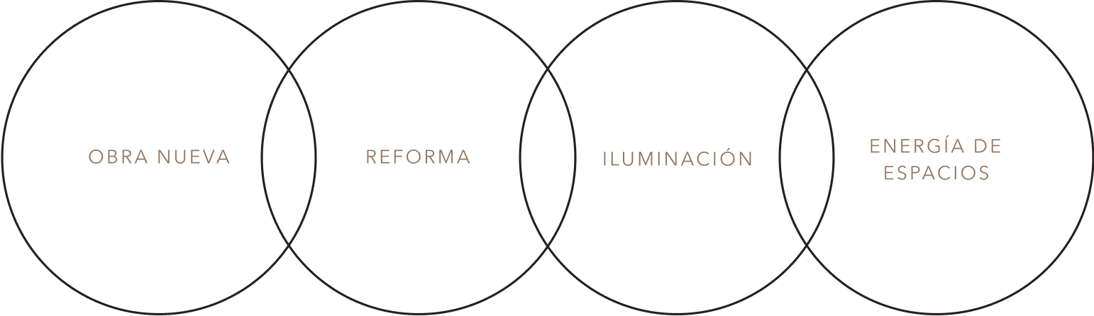 Estudio lumínico técnico y atmosférico para cada espacio.